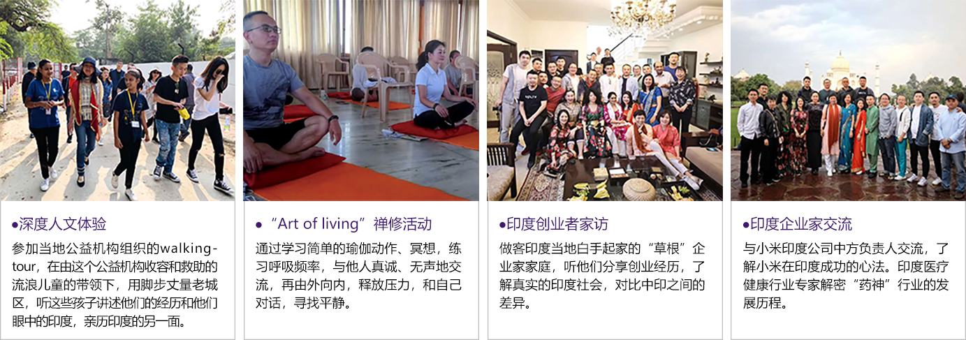 本团是创业型企业家团体组织的班级活动,以印度为游学目的地,为增进同学感情、体验世界各国风土人情、寻找创新原力。在印度看似矛盾、极端的文化背后,实则有着复杂的历史、宗教因素。因此,我们安排了多项人文体验,深度探索印度文化、亲历当地宗教圣地,深入了解印度商业成长模式,从不同角度重新认知这个古老的国度。